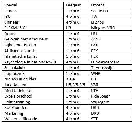 - Meer keuzes voor leerlingen om hun interesses te verbreden en inspiratie op te doen in de SPECIALS